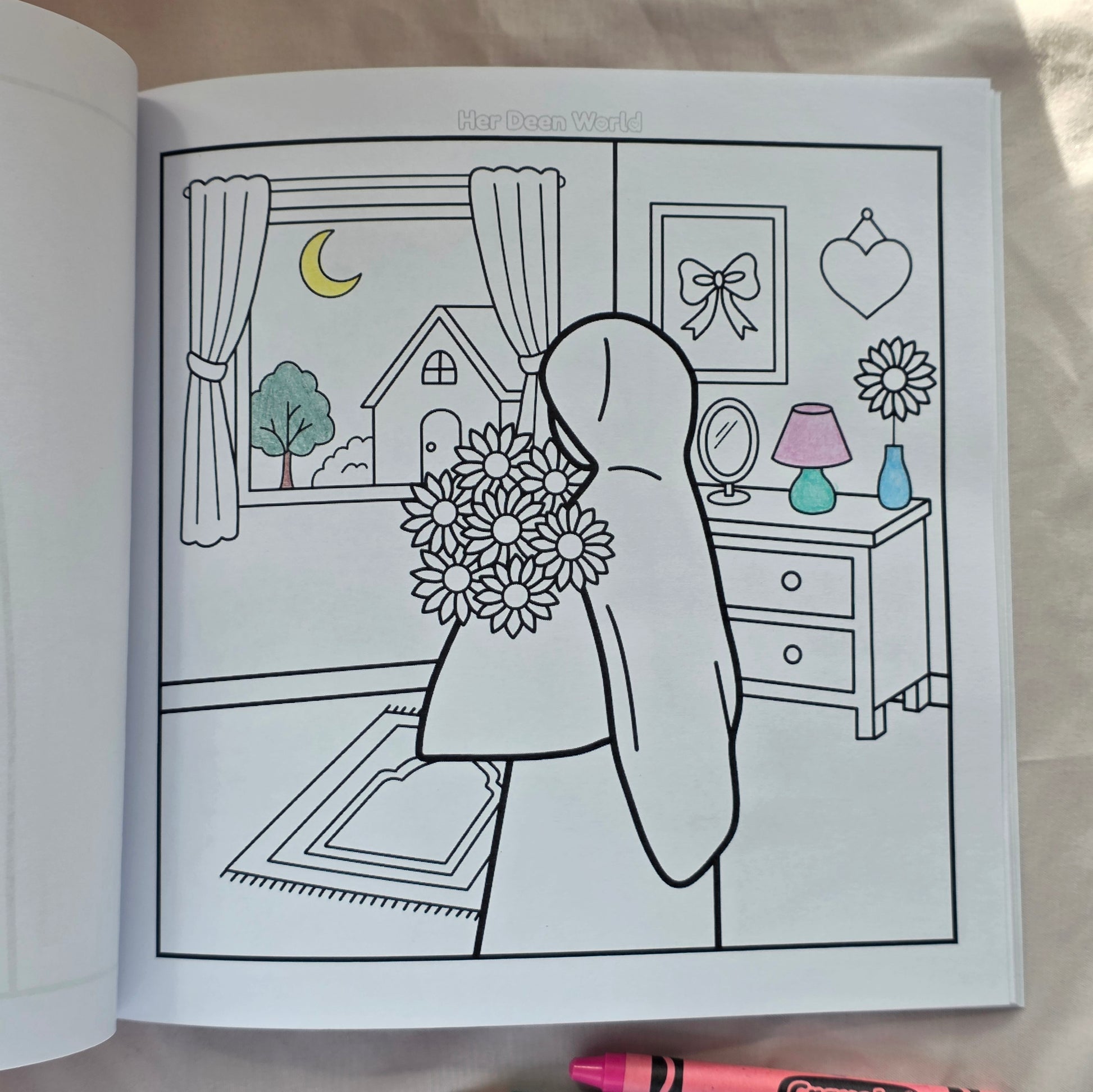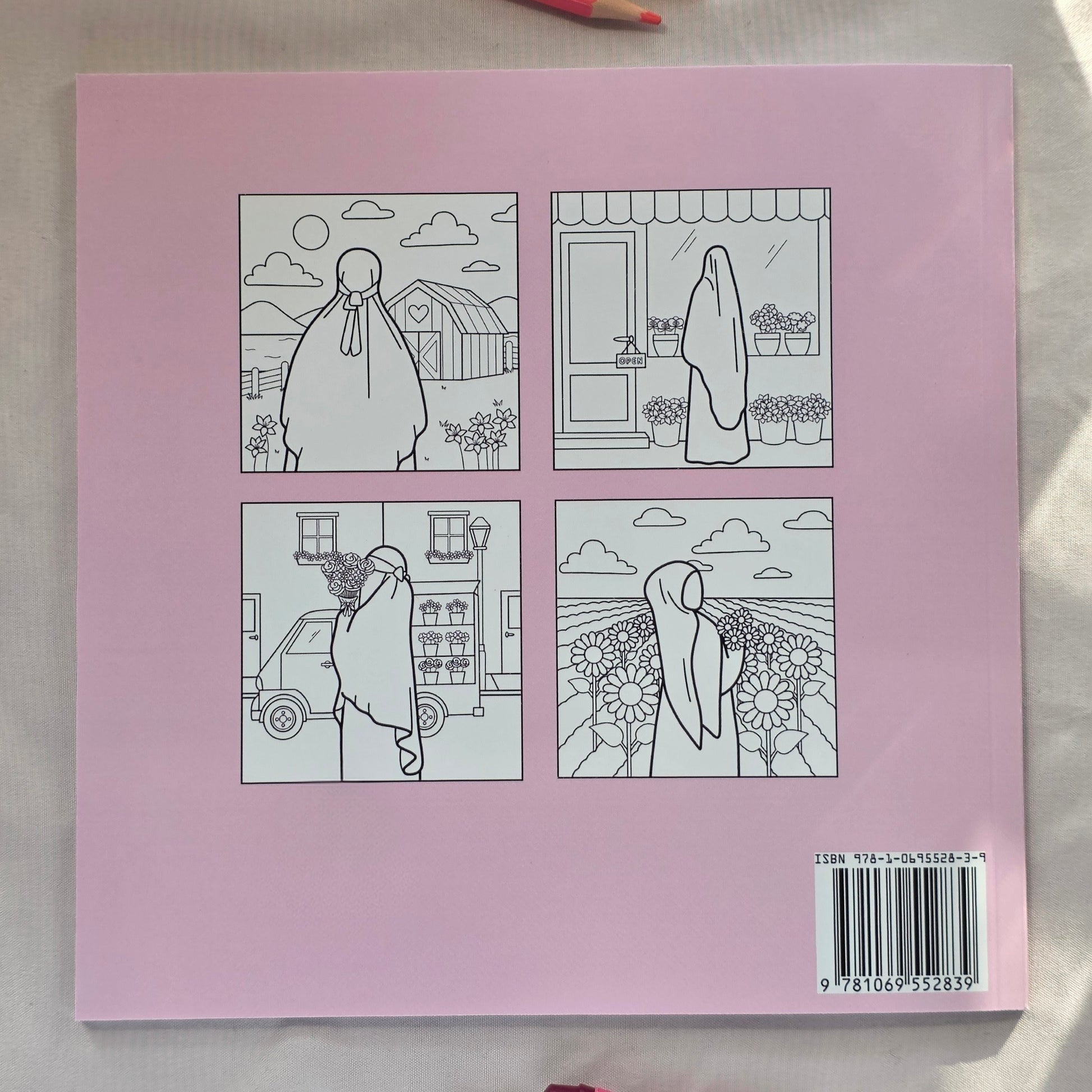 Muslimahs in Bloom gives you flower-filled designs featuring hijabi and niqabi characters in everyday moments such as gardens, flower shops, the mosque, and simple at-home scenes. Every page is easy to color and created to represent you beautifully and authentically.
